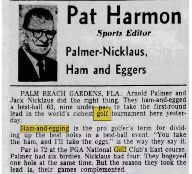 (参照:Where does the golf phrase ‘ham and egg’ come from? And what does it even mean? | Golf News and Tour Information | GolfDigest.com)