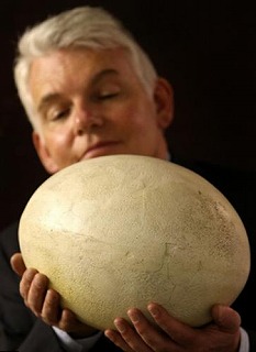 約400年前のもので、エピオルニスという巨鳥のたまごです。 すごい!ラグビーボールくらいあります。 大きさはダチョウの卵の7倍あるそうで、鶏卵140個分に相当します。 さぞ食べがいあっただろうなー・・・。 この品は、英国サザビーズのオークションで5000ポンド(約62万円)で落札されたもの。