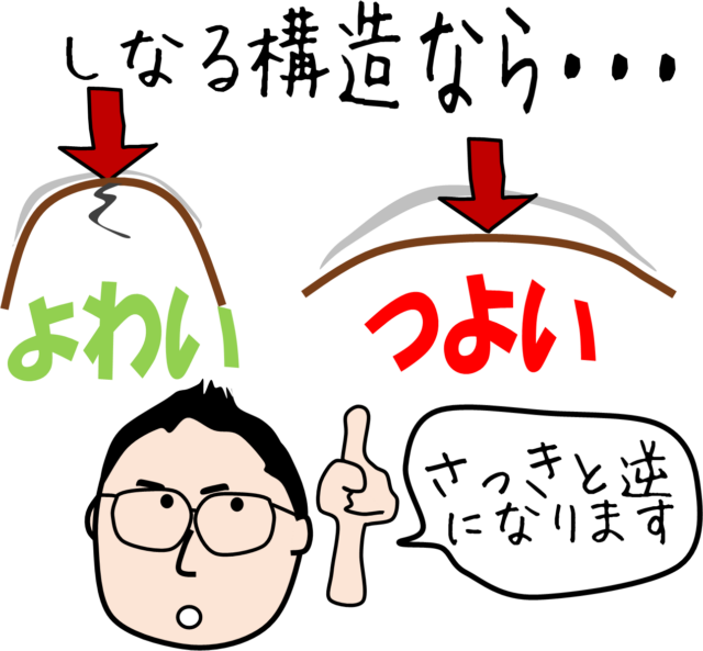 まるく曲がっている方が耐荷重が高い、