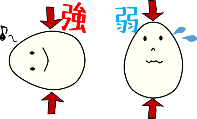 ・卵は横向き(おなかの部分=赤道方向)で力を受けた方が割れにくい。